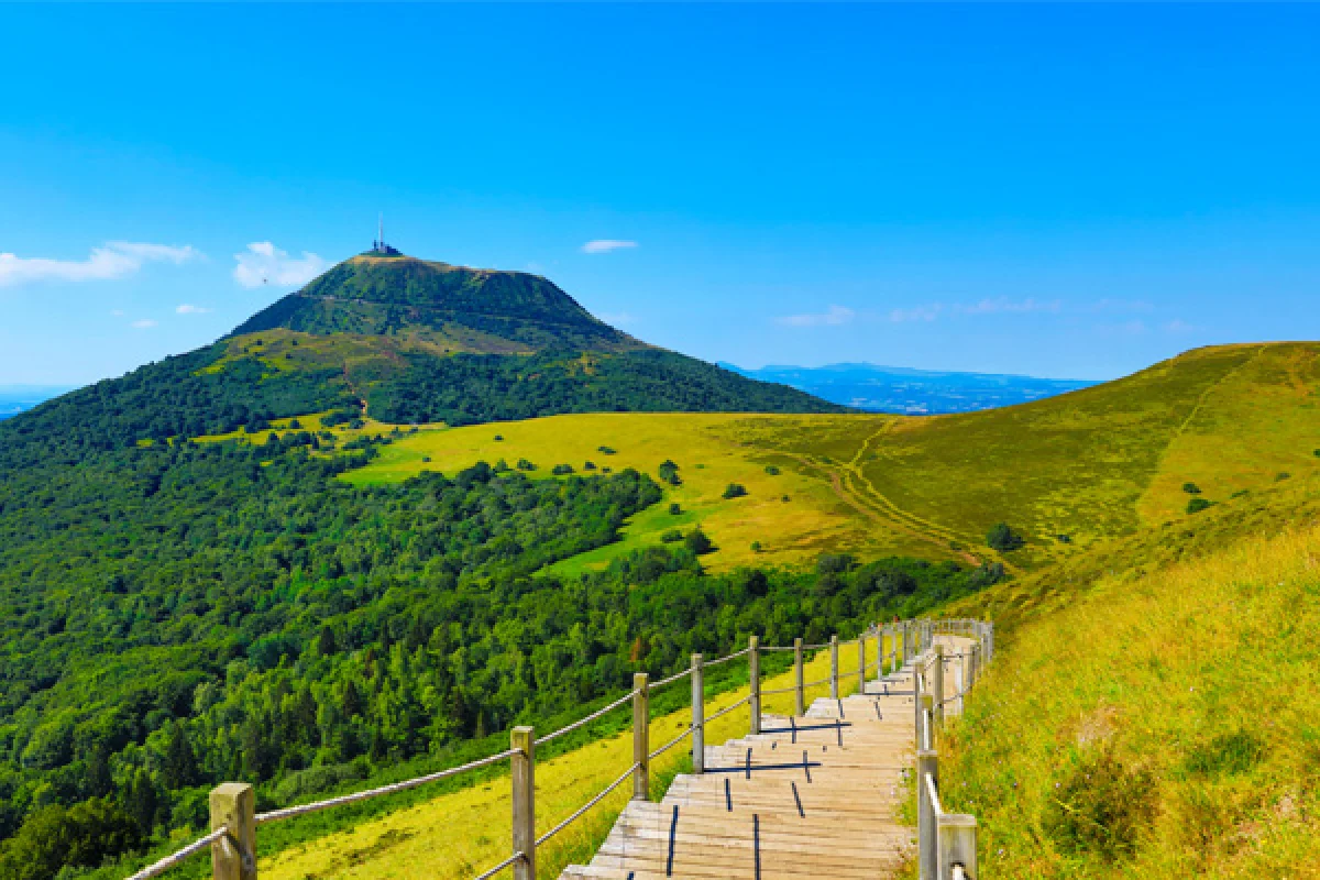 - Après-midi : accès au sommet du Puy de Dôme (ancien dôme de lave) en train à crémaillère, offrant une vue exceptionnelle sur tout le parc naturel régional des Volcans d’Auvergne.